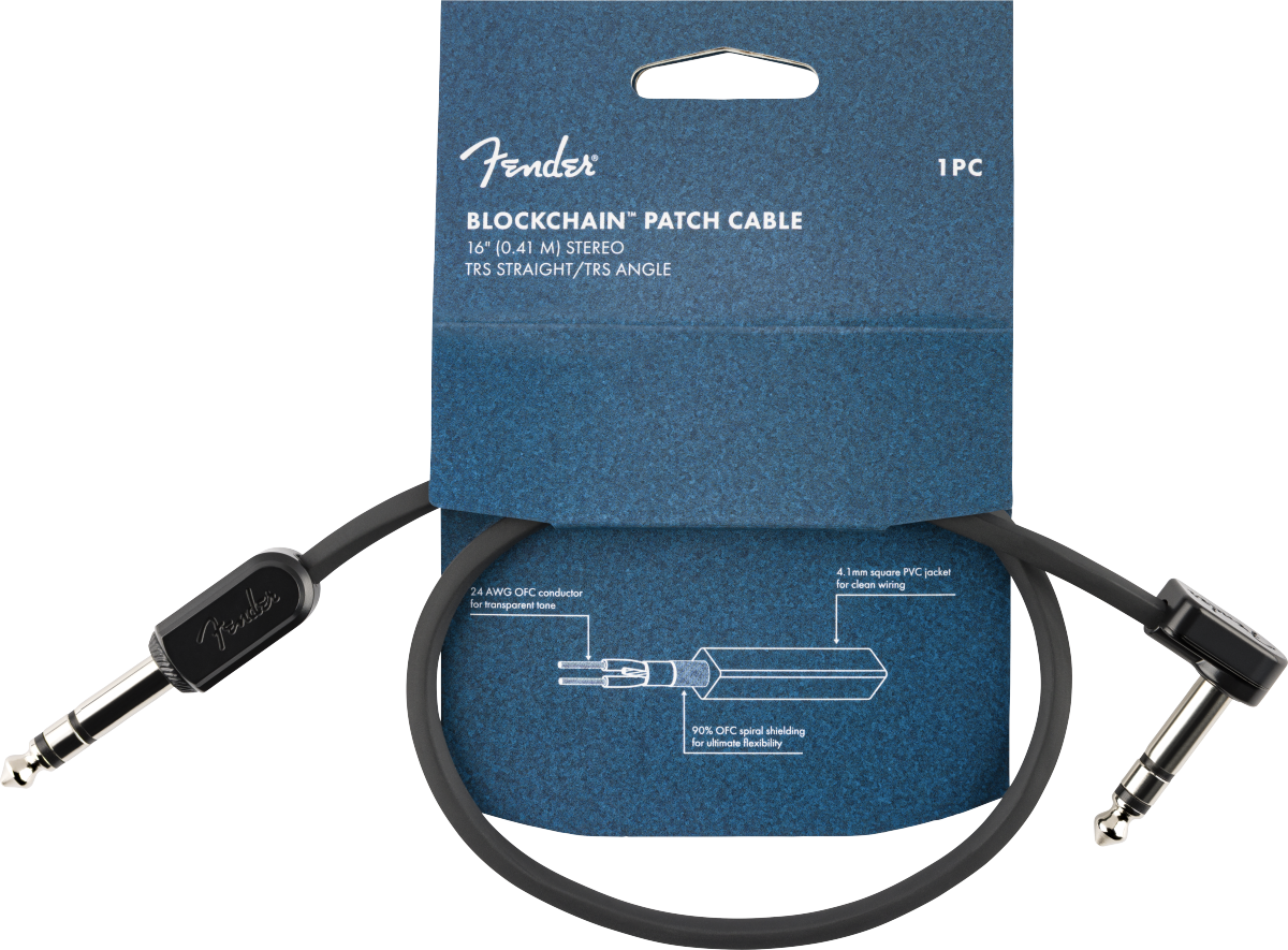 Fender Blockchain 16" Patch Cable, Stereo TRS, Straight/Angle