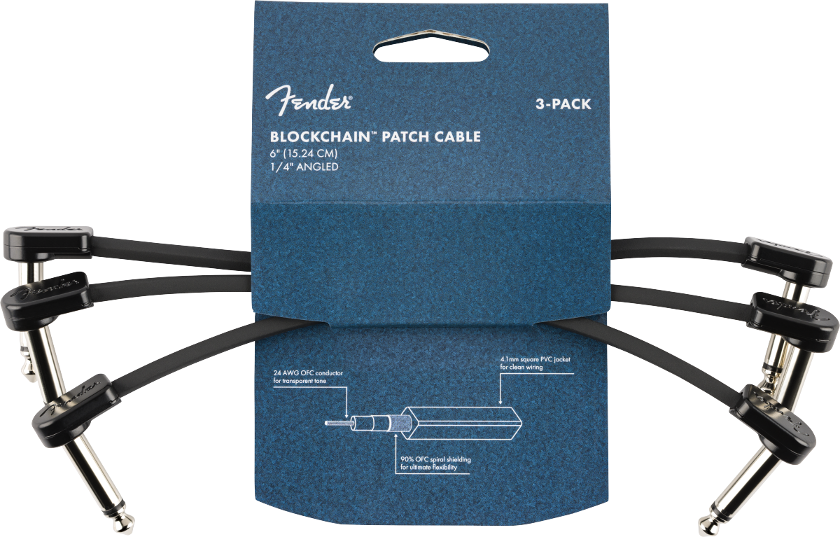 Fender Blockchain 6" Patch Cable, 3-pack, Angle/Angle