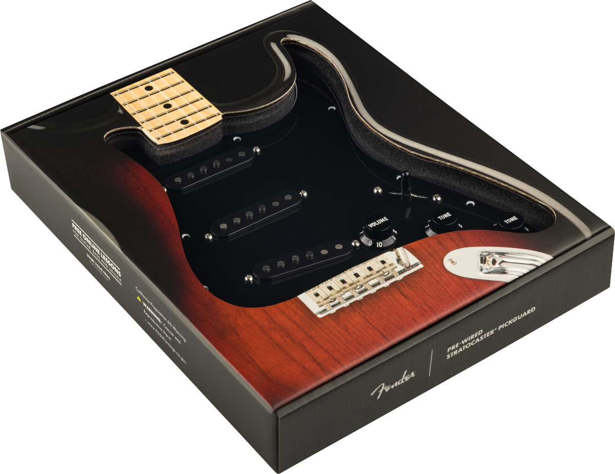 Fender Pre-Wired Strat Pickguard, Pure Vintage '65 w/RWRP Middle, Black 11 Hole PG