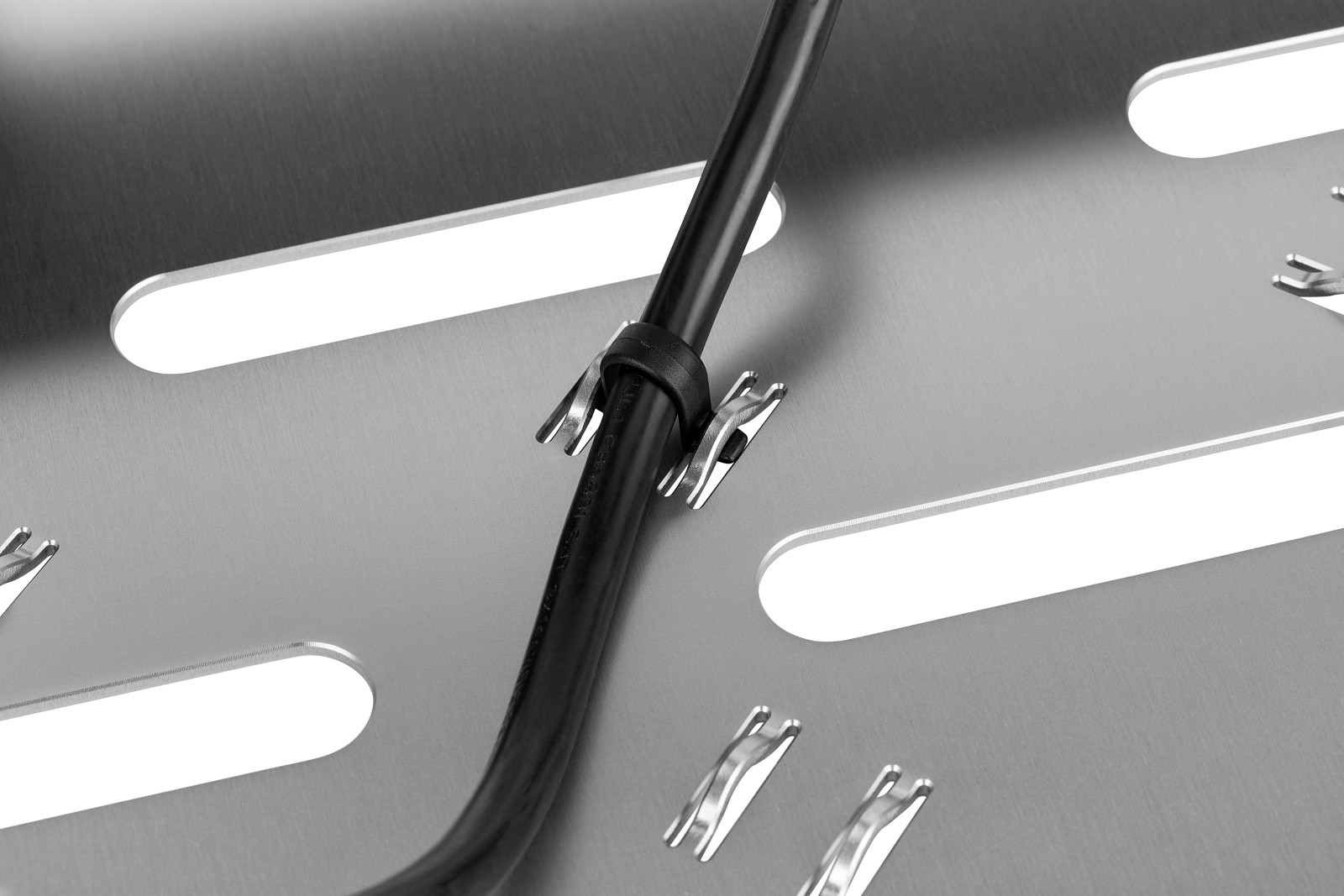 Anodised aluminium is strong and lightweight, delivering a striking, low-profile design.INTEGRATED CABLE ROUTING AND UNIVERSAL POWER-SUPPLY MOUNTING