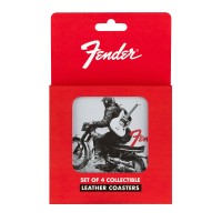 - 4 pack leather coaster set, each depicting Fender's early 1960 ad campaign, "You Won't Part With Yours Either"
