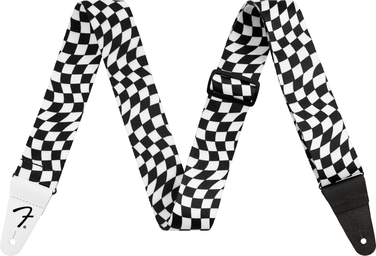 Fender Wavy Checkerboard Polyester Strap, Black/White 2"