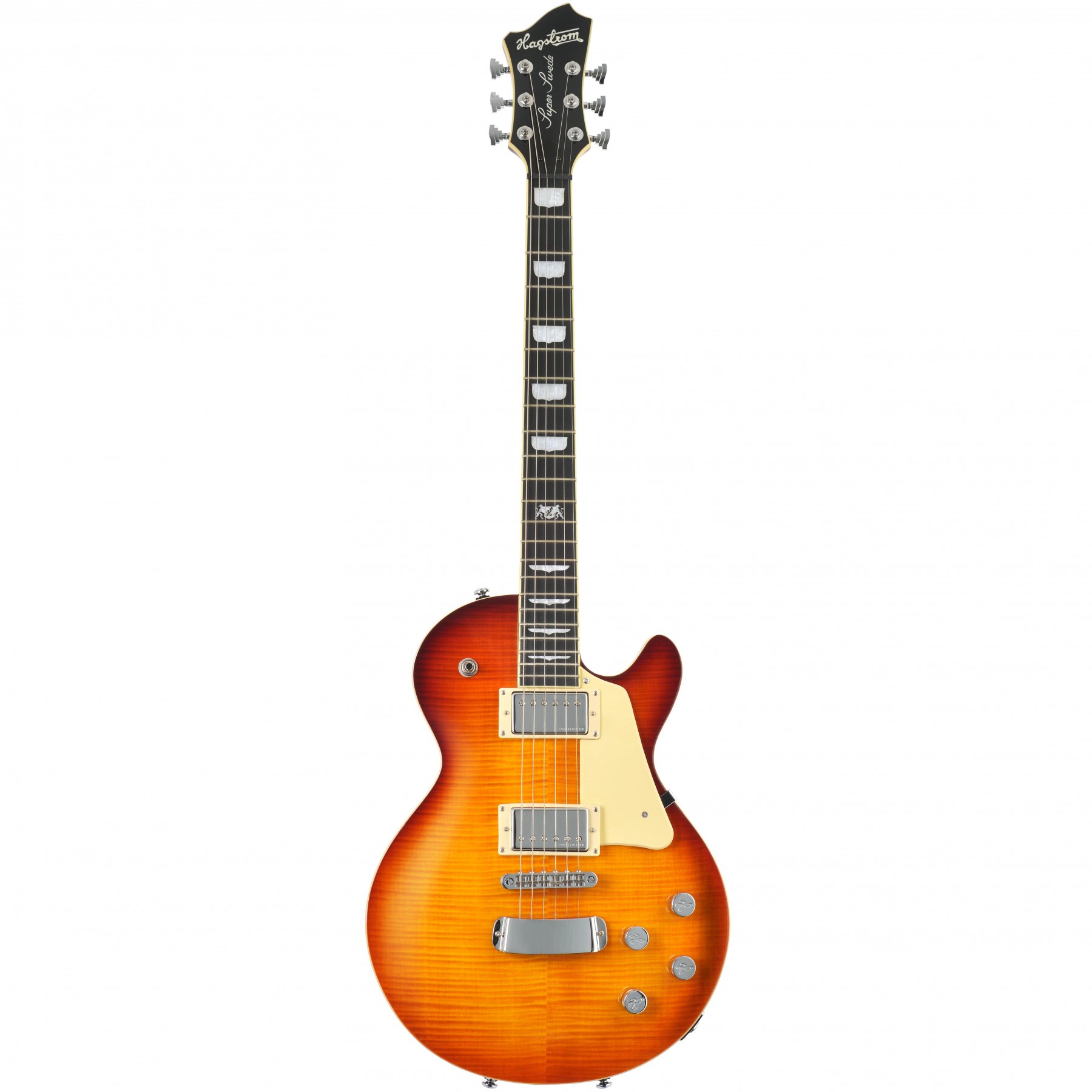 Each guitar is adorned with the Hagstrom coat of arms, inlaid throughout the fretboard, representing the "Hagstrom Clan," a family with a rich history and a deep connection to the craft of guitar-making. It is a symbol of honour and pride that has been worn with distinction for centuries and continues to be a powerful emblem of their dedication to quality and excellence in modern times.
