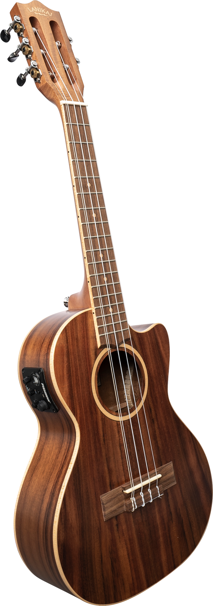 Size: Tenor Scale: 432mm Frets: 17 Cutaway: Yes Nut width: 37.4mm Top: Solid Acacia Back and sides: Acacia Neck: Okoume Fingerboard and bridge: Laurel Tuners: Chrome open back Preamp: Fishman Kula with tuner Nut and saddle: Graph Tech NuBone XB Strings: D'Addario EJ88T (5th/Low G string from EJ88T-8) Binding and rosette: Maple Finish: Natural, satin Note: Low G and high g in a course with bag - Additional Information