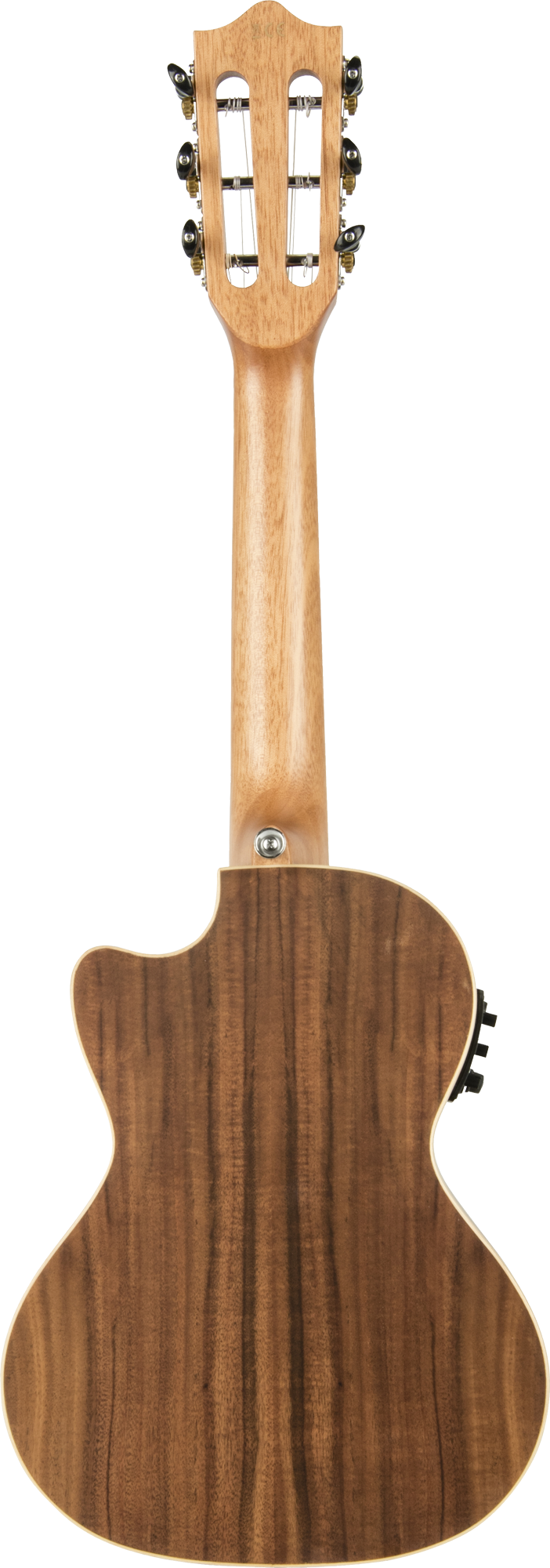 Size: Tenor Scale: 432mm Frets: 17 Cutaway: Yes Nut width: 37.4mm Top: Solid Acacia Back and sides: Acacia Neck: Okoume Fingerboard and bridge: Laurel Tuners: Chrome open back Preamp: Fishman Kula with tuner Nut and saddle: Bone Strings: D'Addario EJ88T-6 Binding and rosette: Maple Finish: Natural, satin Note: The sound hole course is c high octave with the normal C lower octave, the Lower bout course is A normal and outside A is a wound string low octave with bag - Additional Information