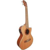Size: Tenor Scale: 432mm Frets: 17 Cutaway: Yes Nut width: 37.4mm Top: Solid Cedar Back and sides: Mahogany Neck: Okoume Fingerboard and bridge: Laurel Tuners: Grover nickel open back Preamp: Fishman Kula with tuner Nut and saddle: Graph Tech NuBone XB Strings: D'Addario EJ88T Fingerboard binding: Walnut Binding: Maple Rosette: Mahogany Finish: Natural, satin with bag - Additional Information