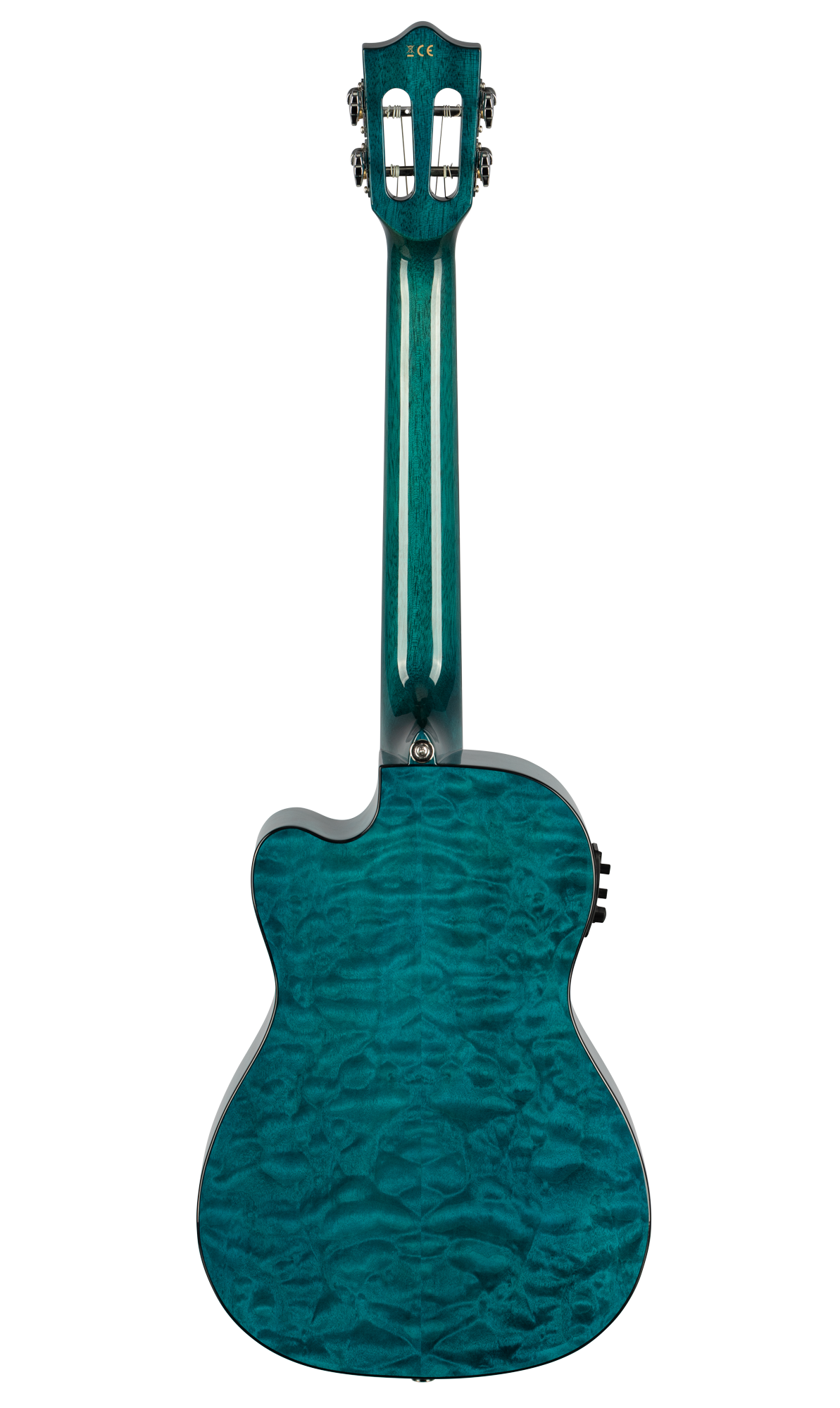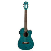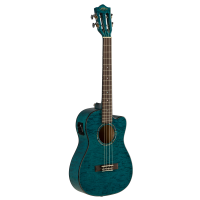 • Size: Baritone • Top, back and sides: Quilted Maple • Cutaway: Yes • PreAmp: Fishman Kula with Tuner • Nut width: 38.8 mm • Scale: 514 mm • Frets: 18 • Fingerboard: Laurel • Tuners: Grover Nickel, open back • Nut and saddle: Graph Tech NuBone XB • 2 Chrome strap buttons • Strings: D'Addario EJ88 • Binding: Black multiply ABS • Rosette: Abalone • Finish: Gloss, Blue • with Foam Case - Additional Information