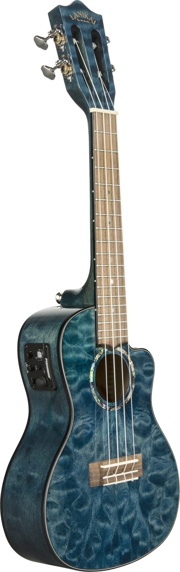 Lanikai Quilted Maple QM-BLCEC Electric Blue Concert Ukulele