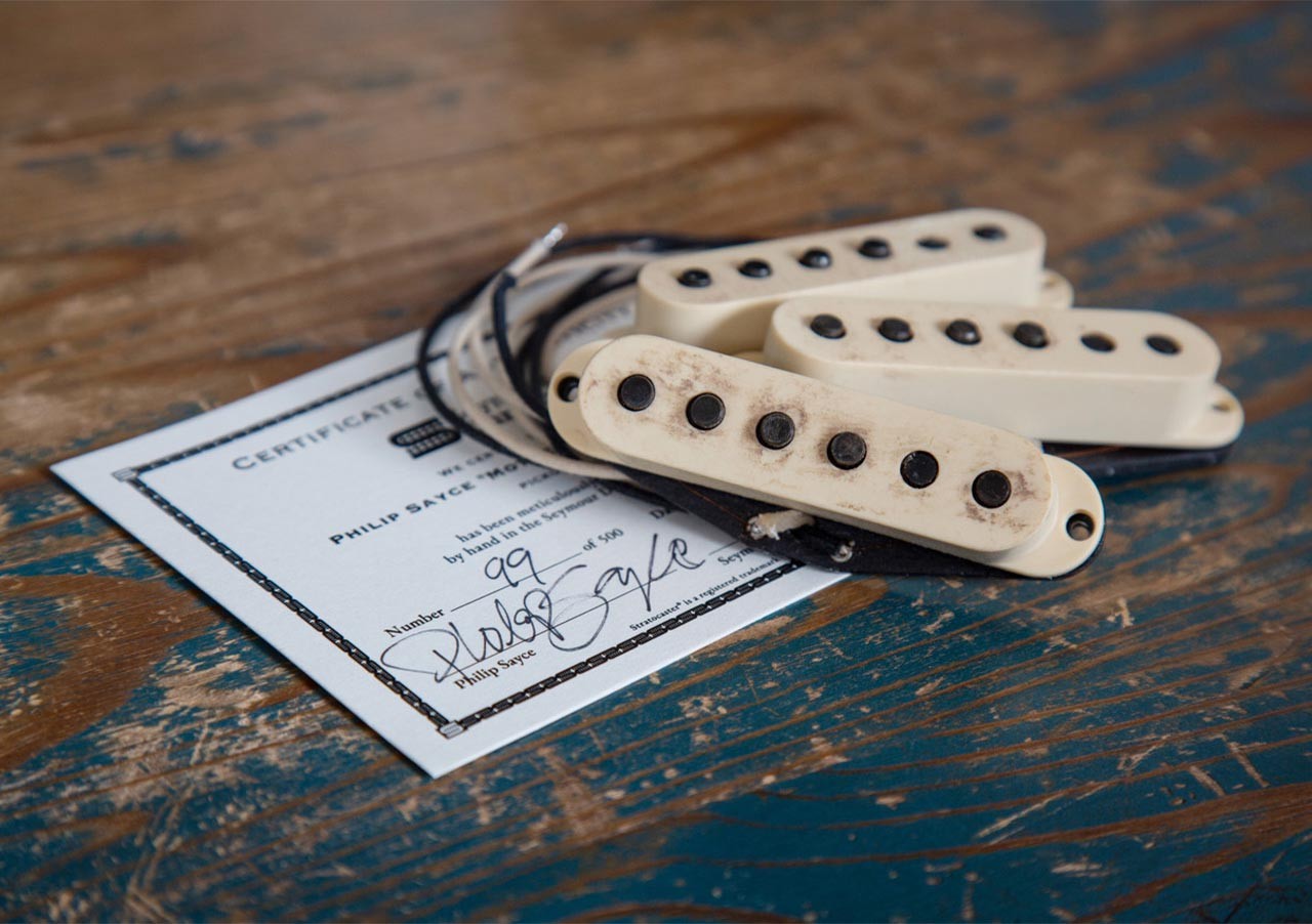 The first 500 sets of the Philip Sayce “Mother” Stratocaster® Pickups are specially aged in the Custom Shop to match the look of the originals. They include a certificate of authenticity signed by Philip and Seymour W. Duncan inside the limited-edition packaging. All sets are pad-printed with Philip’s signature on the flatwork.