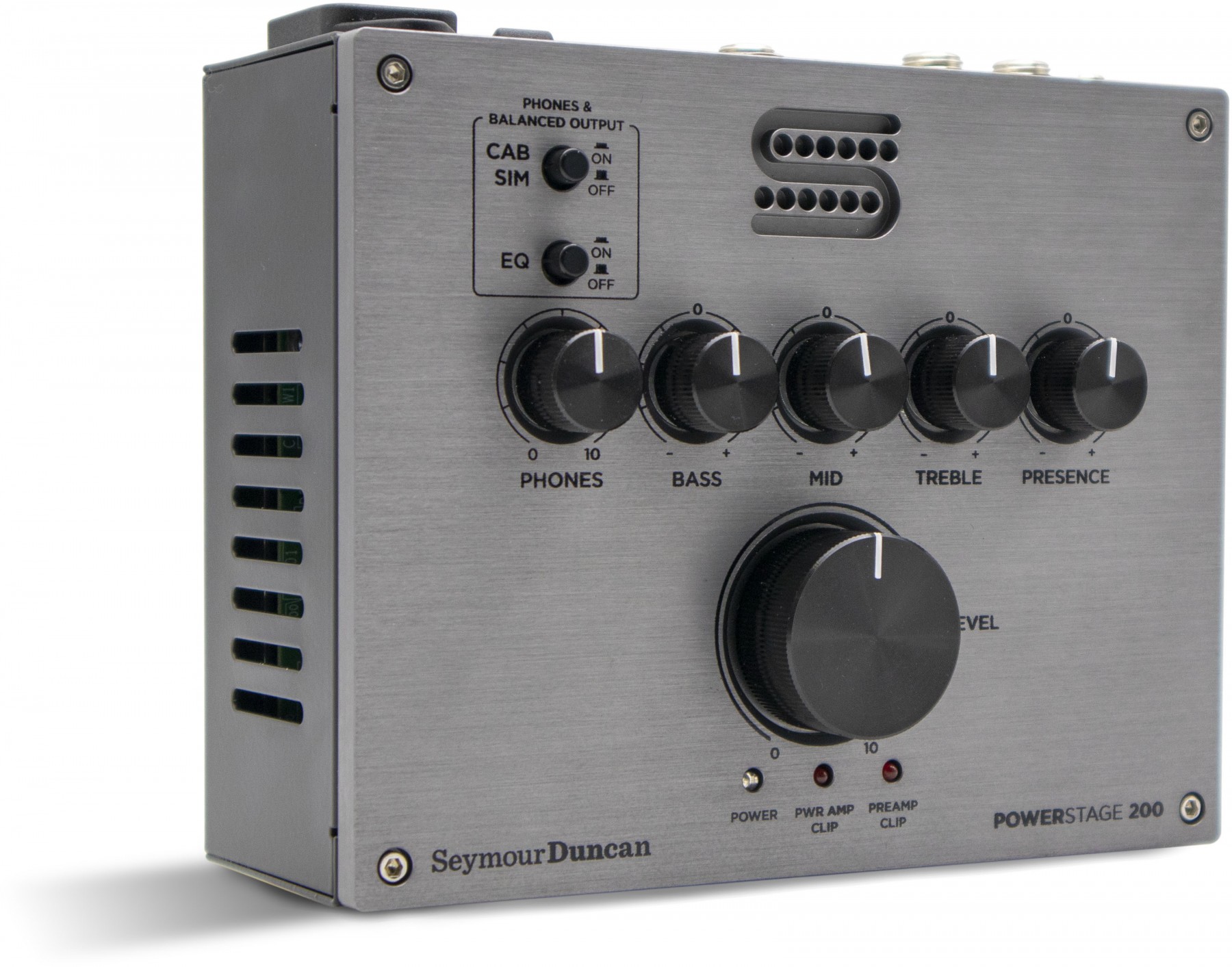 Seymour Duncan included independent bypass switches for both the cab sim and EQ to make silent recording more flexible. When you bypass the cab sim, you can use your own cab sim or IR device, which can expand your palette of great cab tones to pair with the PS200. Bypassing the EQ section, you can pass the tonal shaping duties off to your modelling device or preferred EQ shaping tool.