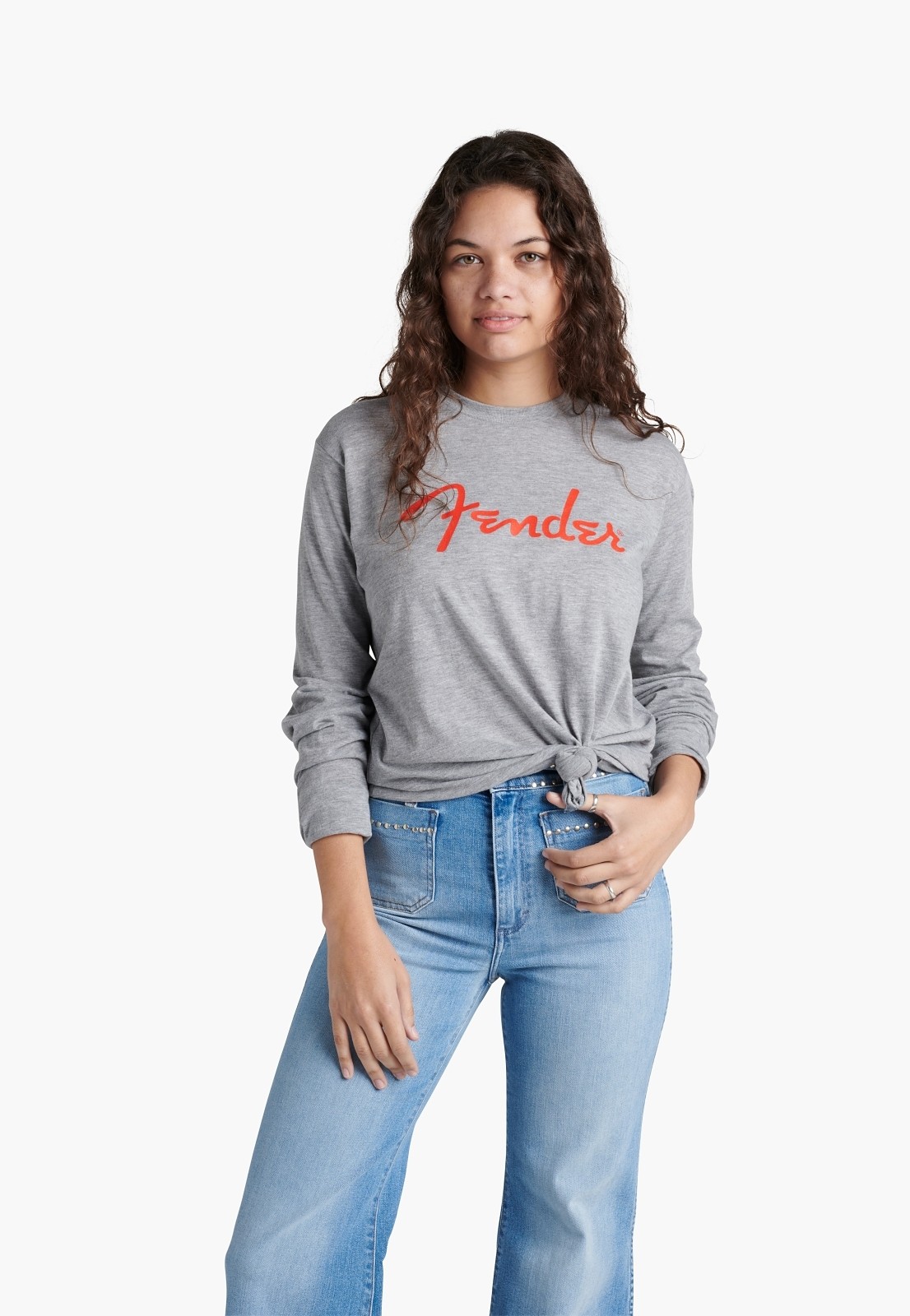 Fender Spaghetti Logo Long Sleeve T-Shirt, Heather Gray, XXL