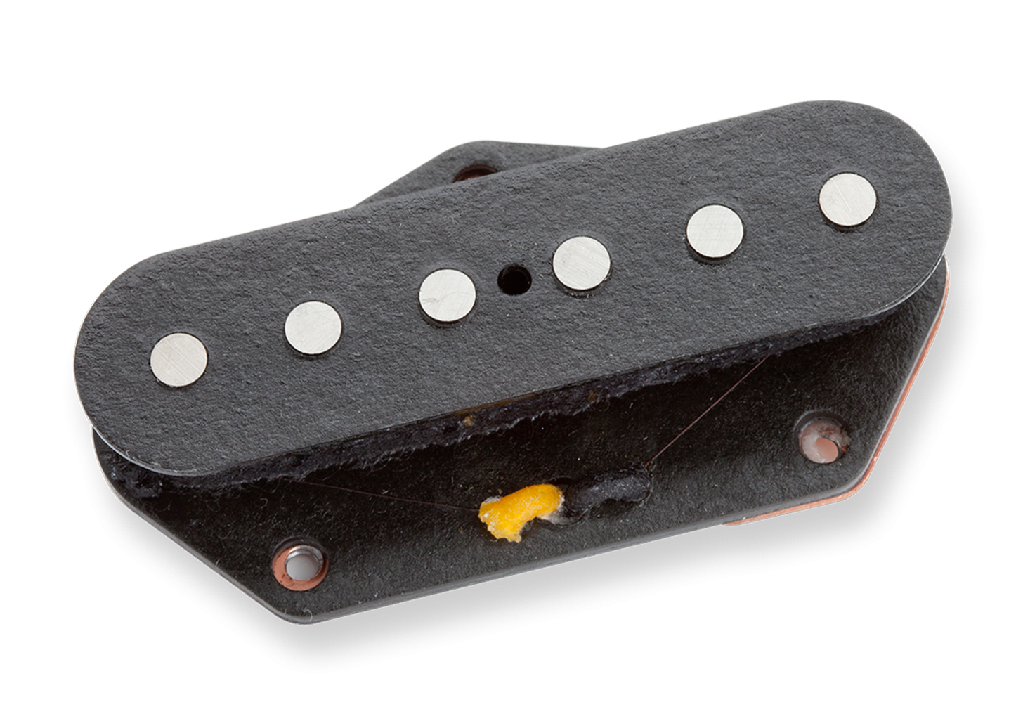 A faithful tribute to the 1950 original, our Vintage Broadcaster is the perfect choice for discerning players who demand something more from their Tele lead pickup. Our Broadcaster uses a special wind that best represents this pioneering era in Fender history. The Alnico 5 magnets with a slightly larger diameter of .197 and higher output coax biting treble and snarly mids for raucous riffs and stinging lead runs from any Telecaster. Try it in front of a fuzz pedal for that unmistakable British rock sound. Pair with our Vintage Tele Rhythm for great vintage setup. Like all our Vintage models, we stay true to the smallest details. We hand grind our magnets, then hand assemble the bobbins from the traditional Forbon and dip them in lacquer before winding. The lacquer stabilizes the Forbon for decades of use. After winding, the pickup is wrapped with black cotton yarn and vintage style waxed cloth hookup wire is soldered to the coil eyelets. Wax potting with the classic tele copper plated steel bottom plate installed completes the pickup for squeal free performance.